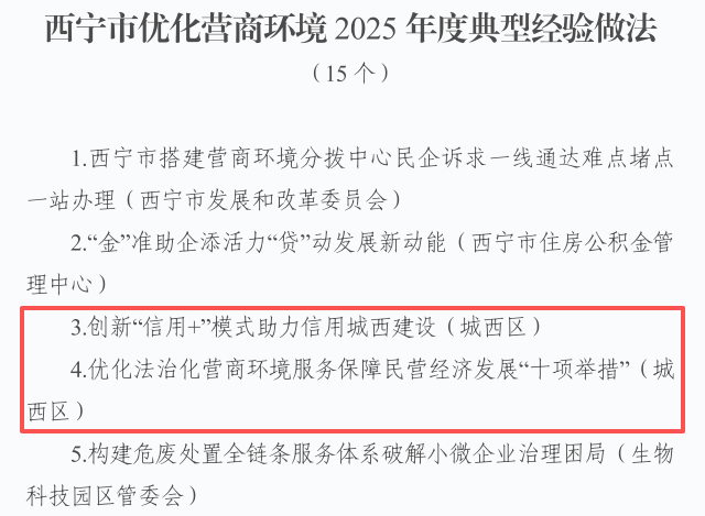 喜报!!!城西区两个案例成功入选西宁市优化营商环境2025年度典型经验做法